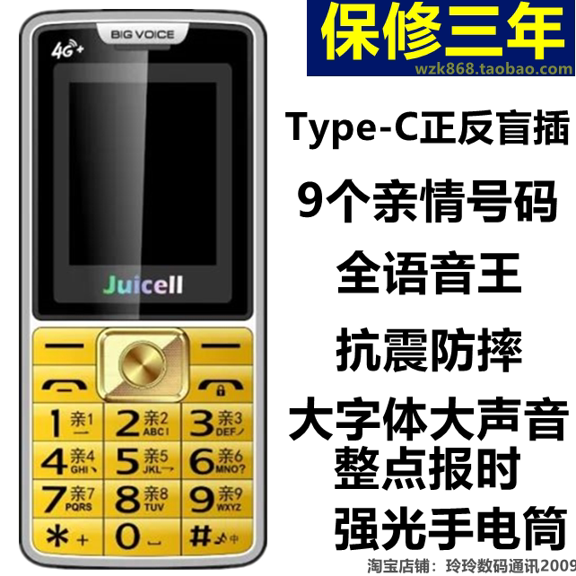金太阳V9胜利 全网通4G老人直板手机抗震防摔语音王手电筒大字体
