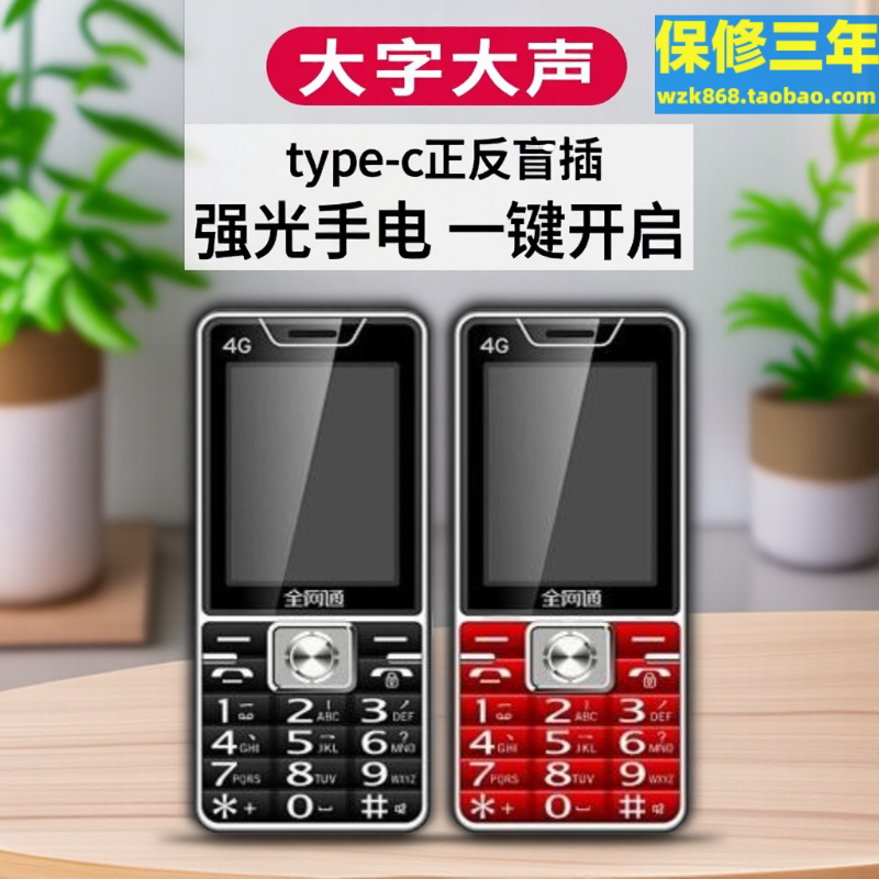 金太阳V9火箭 全网通老人直板手机大字大声超长待机语音王type-c