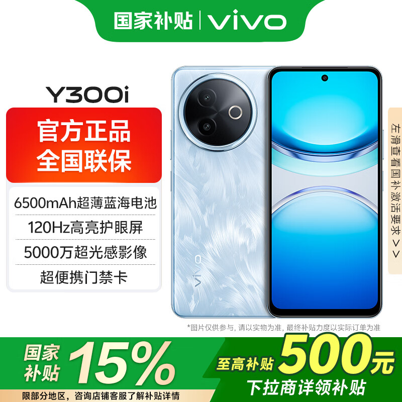 vivoY300i国家补贴 6500mAh超博蓝海电池 400%双扬大音量 5G 全网通新品手机 雾凇蓝 12GB 512GB 标配版