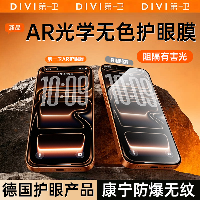 第一卫适用于苹果17pro钢化膜iphone16/15promax手机膜AR抗反射17e新款13/14plus防蓝光12防窥air贴膜11护眼