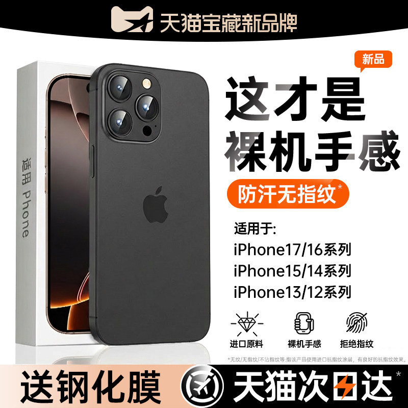【超薄裸机】第一卫适用苹果16手机壳iphone17promax新款14pro磨砂15全包镜头防摔13pm保护套高级12散热外壳