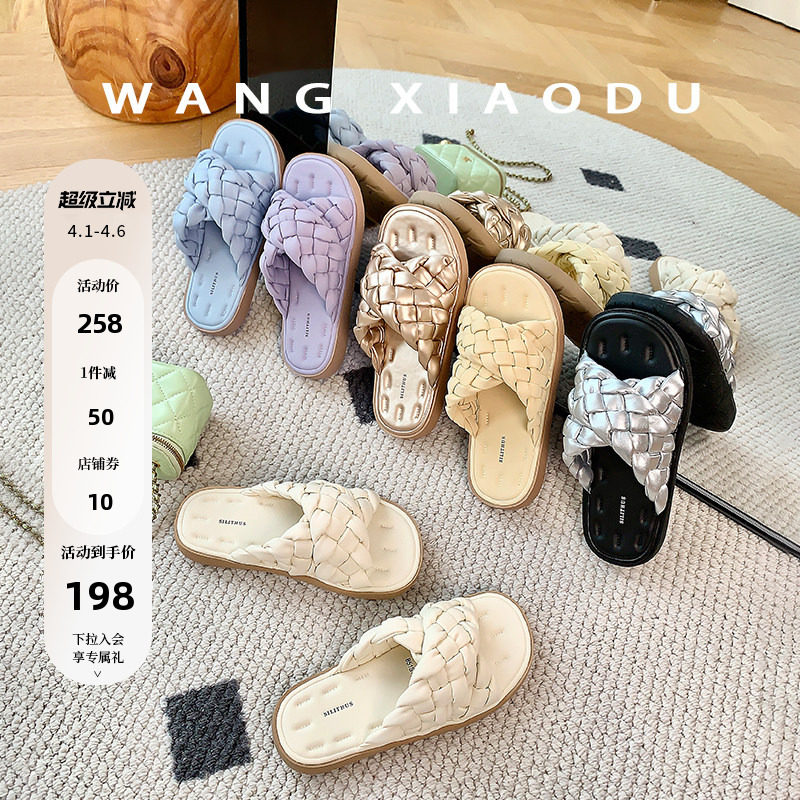 原创【王小毒】编织沙发拖●银色交叉带拖鞋女外穿夏平软底一字拖
