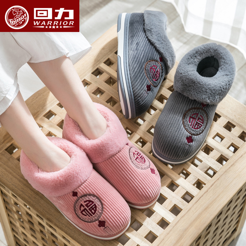 回力中年棉拖鞋女包跟冬室内家用厚底防滑居家保暖情侣毛绒棉鞋男