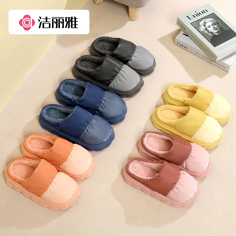 洁丽雅棉拖鞋秋冬新款加绒保暖厚底柔软防滑室内男女防溅水棉拖鞋