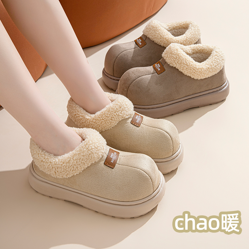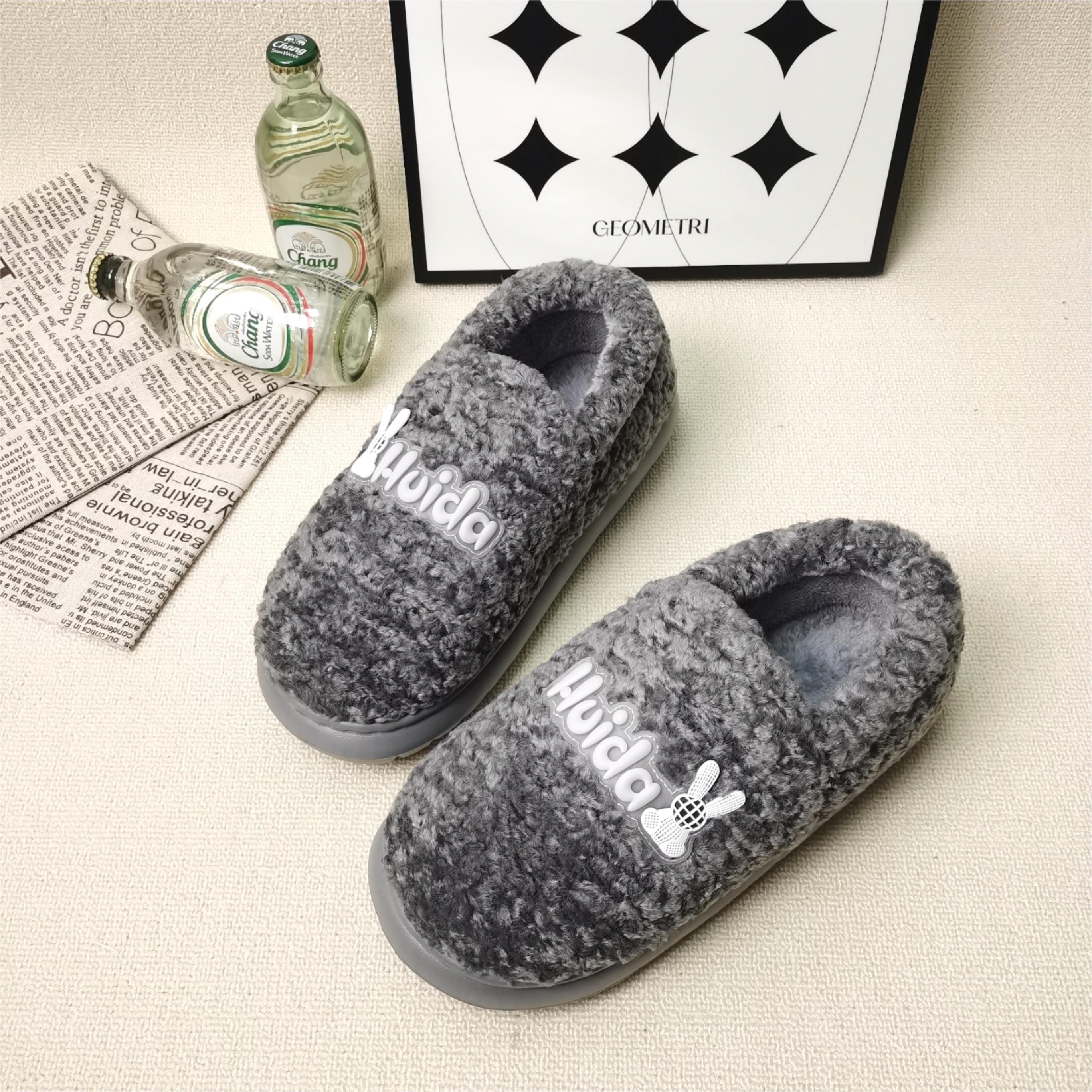 情侣款棉拖鞋女秋冬季室内一对保暖家居家用毛绒拖鞋男士冬天厚底