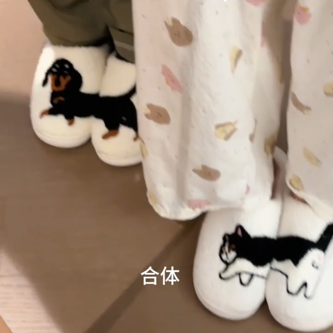 可爱腊肠狗棉拖冬季保暖情侣款男女加绒防滑棉拖鞋居家舒适毛拖鞋