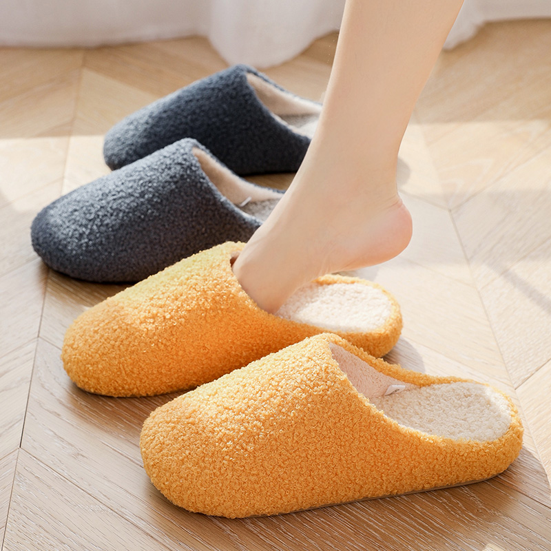 2025新款纯色简约休闲家居棉拖鞋秋冬季保暖防滑厚底毛绒拖鞋MT45
