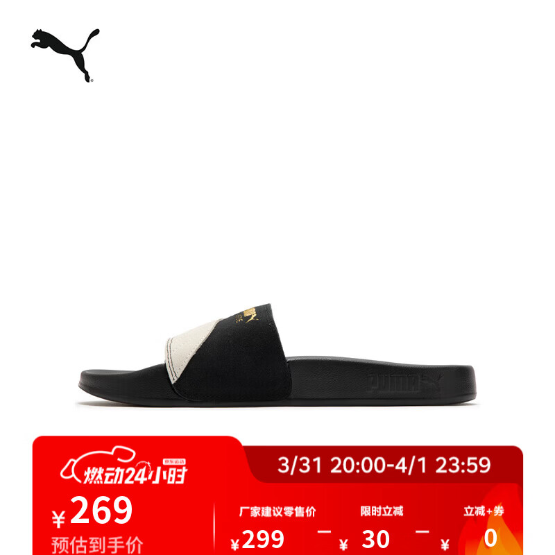 彪马(PUMA)舒适透气沙滩拖鞋男女款运动休闲凉鞋LEADCAT 389117 黑色-白-铁金色-01 38