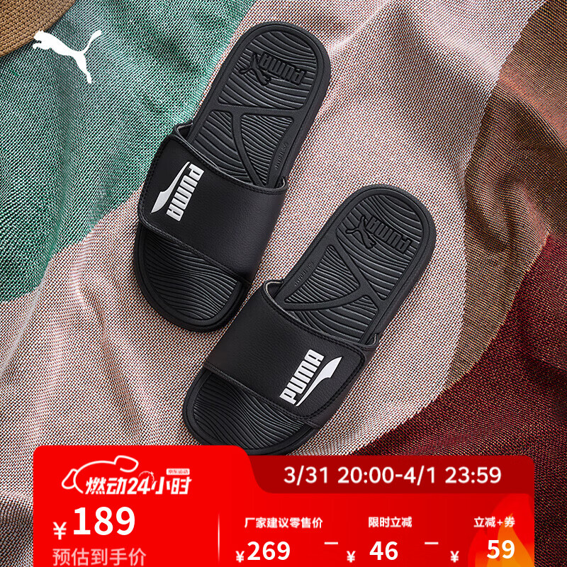 彪马(PUMA)缓震轻便透气魔术贴拖鞋外穿男女沙滩凉鞋COOLCAT 390962 黑色-白-01 40.5