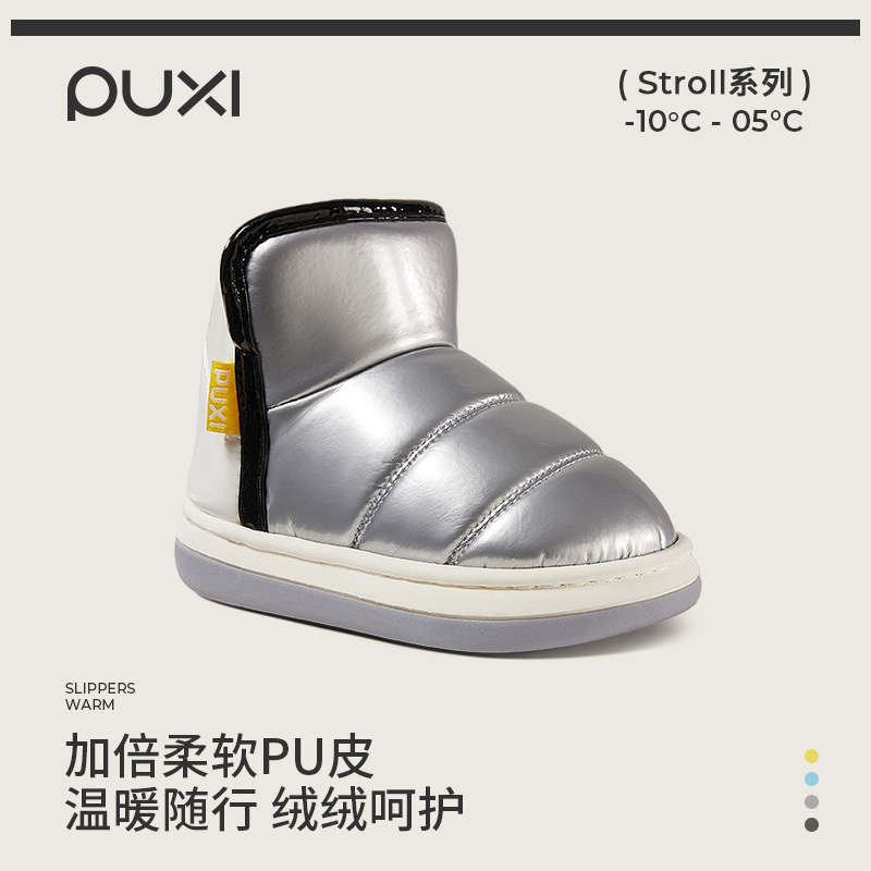 朴西星芒棉鞋男童冬季保暖加厚防水棉靴女童软底亮面短靴大小童鞋