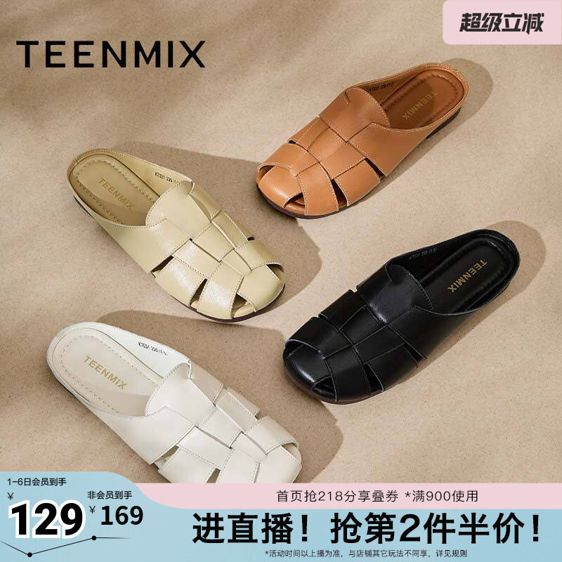 天美意穆勒鞋包头半拖鞋女外穿凉拖罗马凉鞋子新款KT031BT4