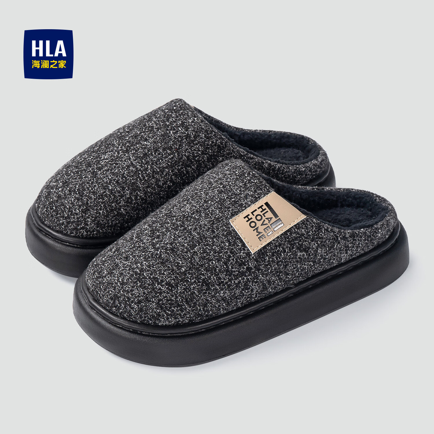 海澜之家(HLA)包头棉拖鞋男士秋冬季室内家居家新款厚底防滑保暖毛毛棉拖鞋男冬 水墨黑 42-43 【适合41-42码脚】