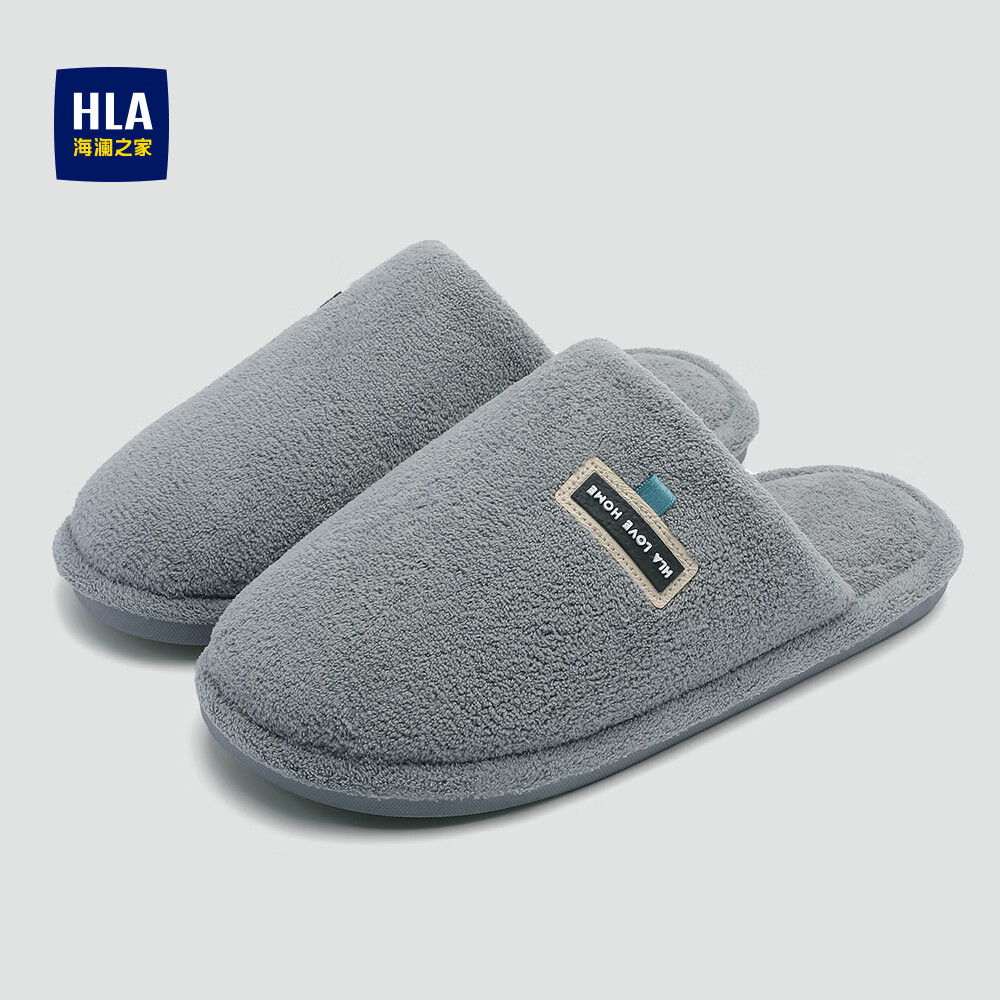海澜之家(HLA)毛绒保暖抗菌棉拖鞋男秋冬季新款包头家居室内情侣防滑地板拖鞋女 雾霾蓝 42-43 【适合41-42码脚】