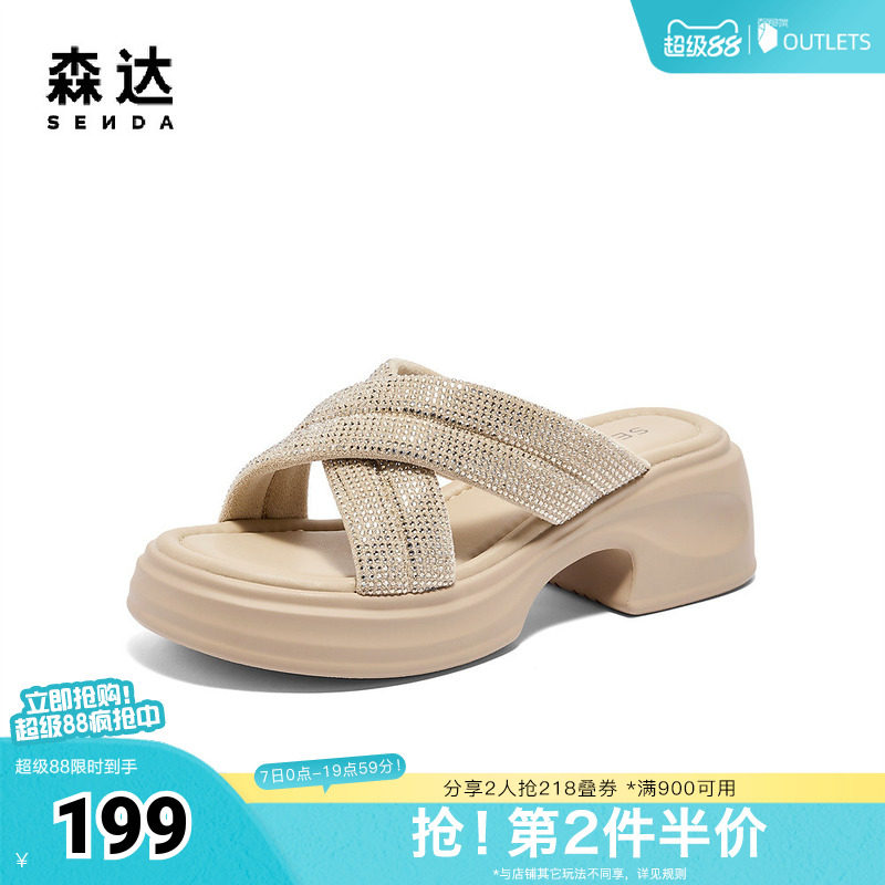 森达凉鞋女款外穿夏商场同款厚底休闲凉拖鞋XCJ01BT4