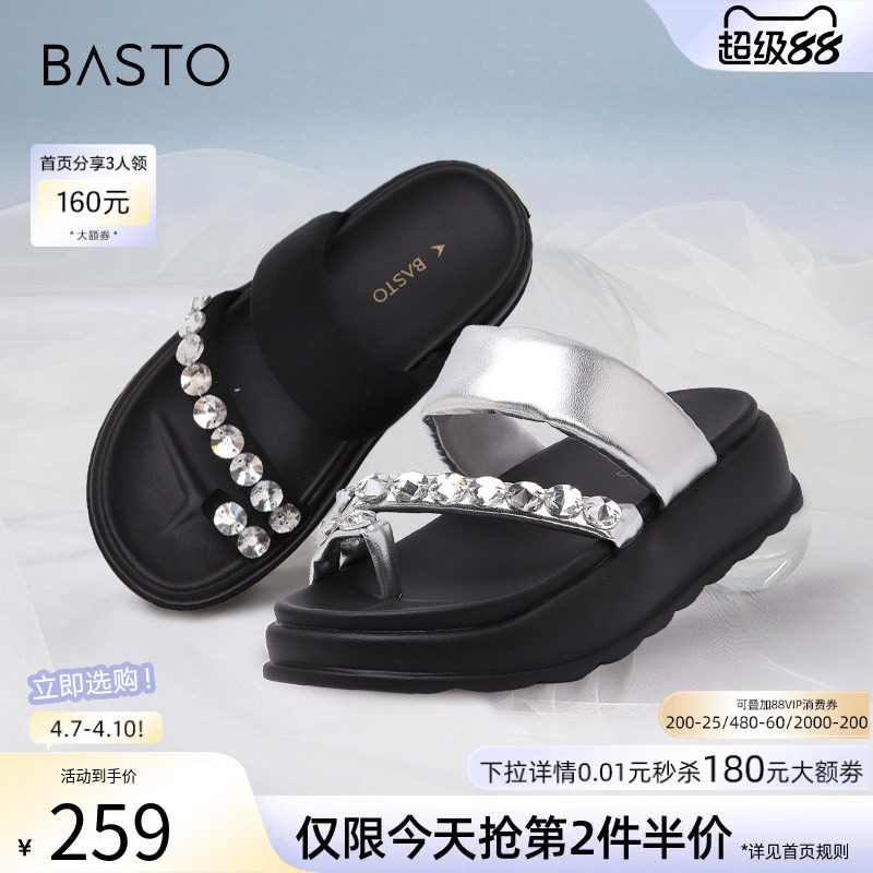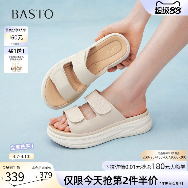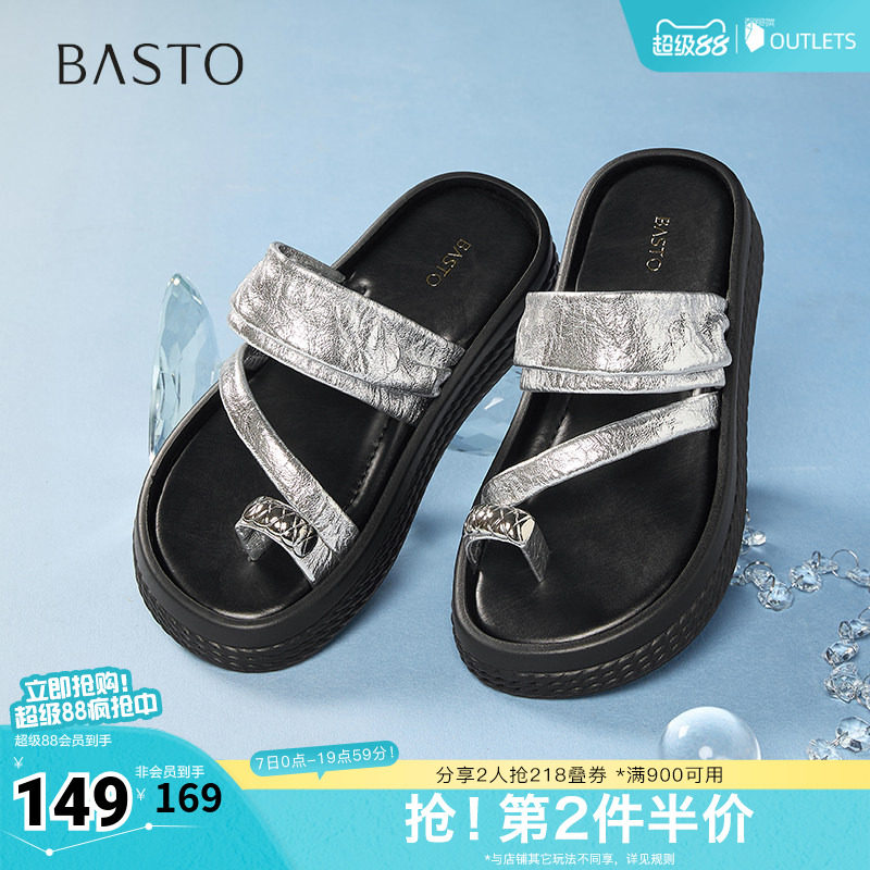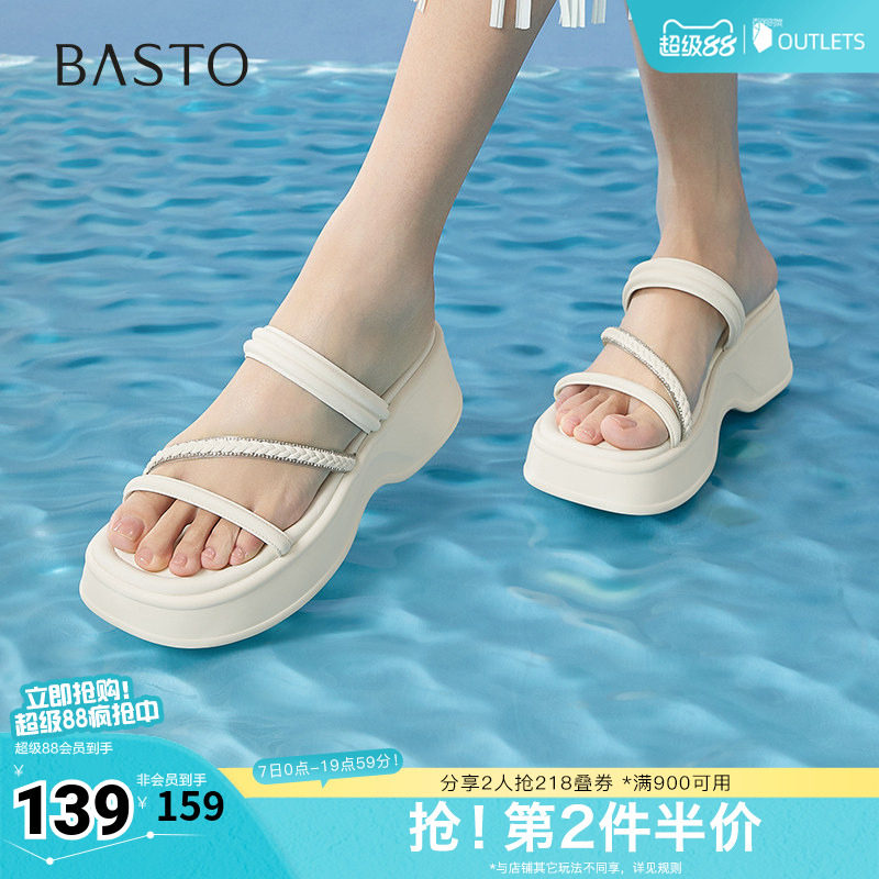 百思图2026夏季商场新款舒适厚底增高休闲凉拖外穿女拖鞋UCLB4BT6