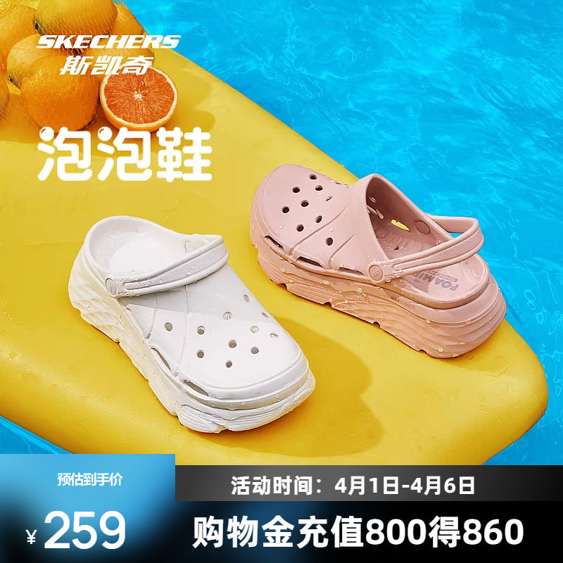 斯凯奇洞洞鞋运动凉鞋女鞋多巴胺拖鞋厚底增高轻便海边沙滩泡泡鞋