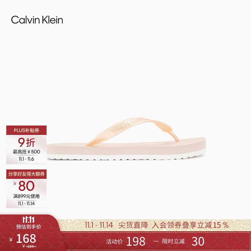 Calvin KleinJeans25女士休闲简约ck字母沙滩泳池人字拖凉拖鞋礼物YW01720 VIC-粉色 37
