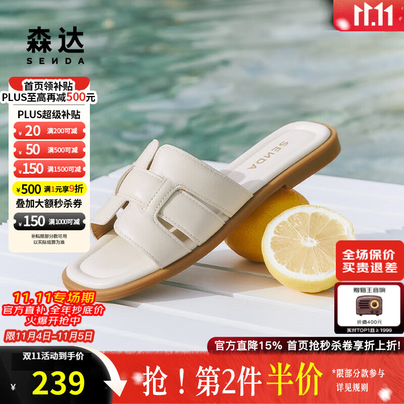 森达一字拖女款2025夏新居家外穿舒适休闲凉拖鞋ZTG26BT5 米白 37