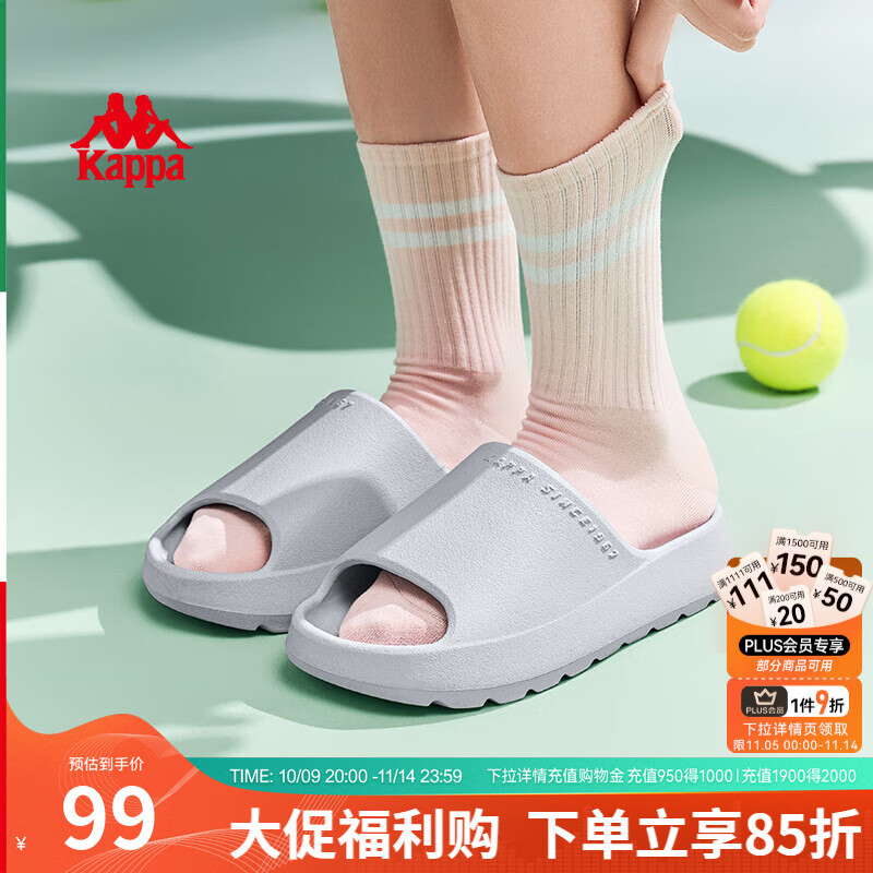 KAPPA卡帕女鞋外穿拖鞋女2025夏季新款户外防滑休闲鞋子一字拖凉鞋女 冷灰色 37-38