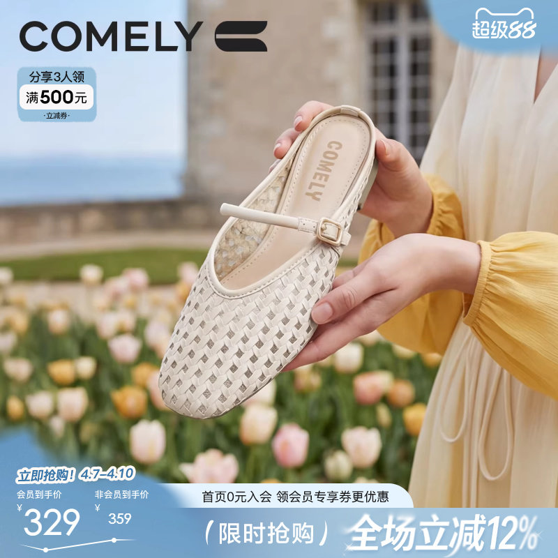 康莉低跟包头拖鞋女夏季新款百搭编织镂空外穿一脚蹬穆勒凉拖单鞋