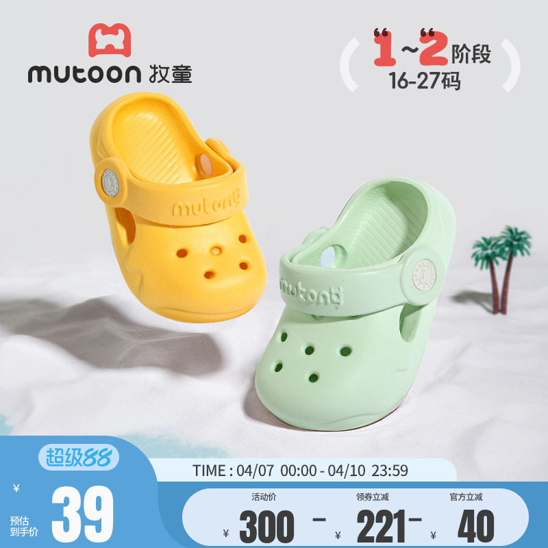 牧童1-3岁儿童凉拖鞋夏季外出沙滩洞洞鞋宝宝软底轻便室内居家鞋