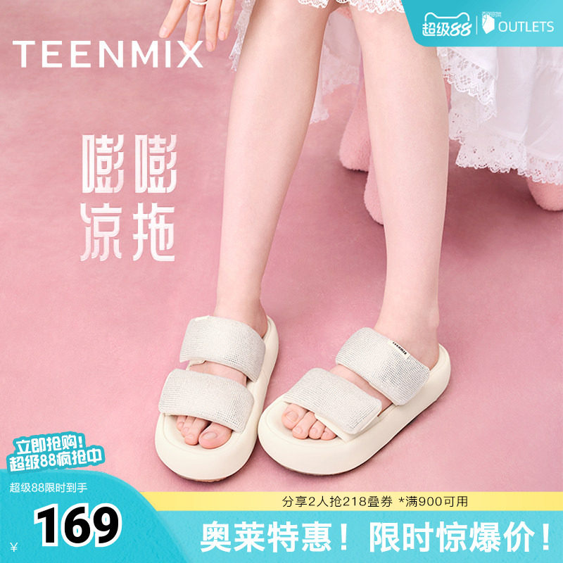 天美意嘭嘭凉拖闪钻一字拖厚底拖鞋女外穿凉拖休闲凉鞋新款