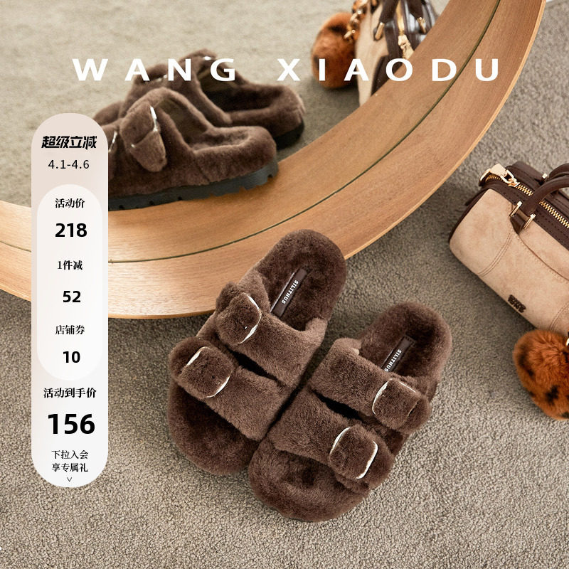 【王小毒】暖洋洋○4cm内增高毛毛一字拖女冬季轻便外穿保暖拖鞋