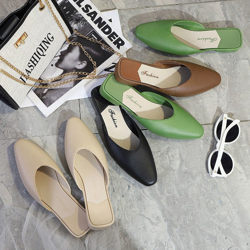 无后跟包头半拖鞋女外穿夏季新款方头小金豆穆勒鞋粗跟懒人凉拖鞋
