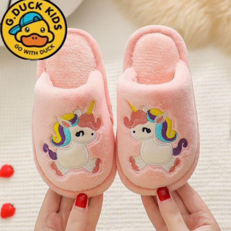 G.duck秋冬季儿童棉拖鞋女童可爱室内居家地板拖男童保暖防滑宝宝拖鞋 粉红色 25 内长16cm 适合1-3岁