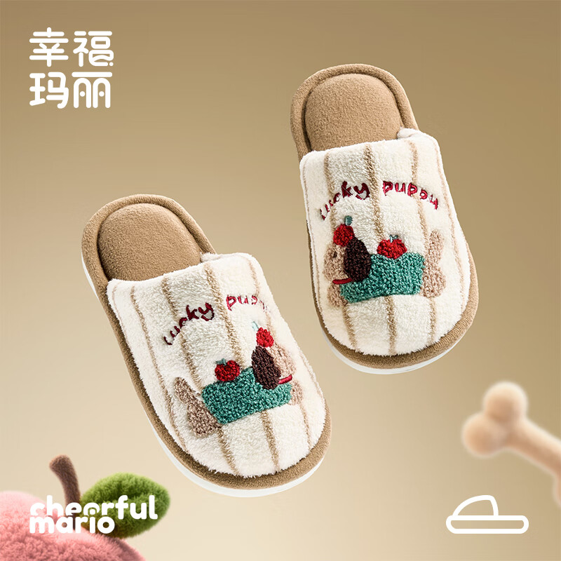 幸福玛丽儿童棉拖鞋女童秋冬季2025新款室内家居男童中童毛毛拖鞋亲子棉鞋 卡其 39 内长25cm适合39-40的脚穿