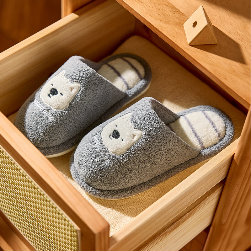 洁丽雅棉拖鞋秋冬加绒保暖女男情侣成人家用软底防滑毛绒可爱棉拖