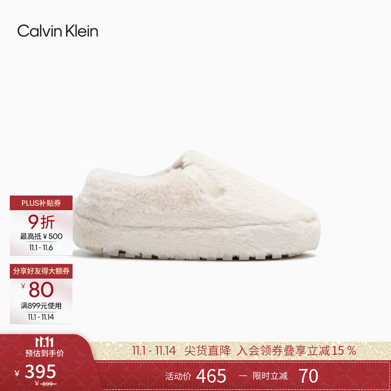 Calvin KleinJeans女士简约ck字母时尚休闲厚底可外穿毛毛拖鞋礼物YW01596 ACF-象牙白 38