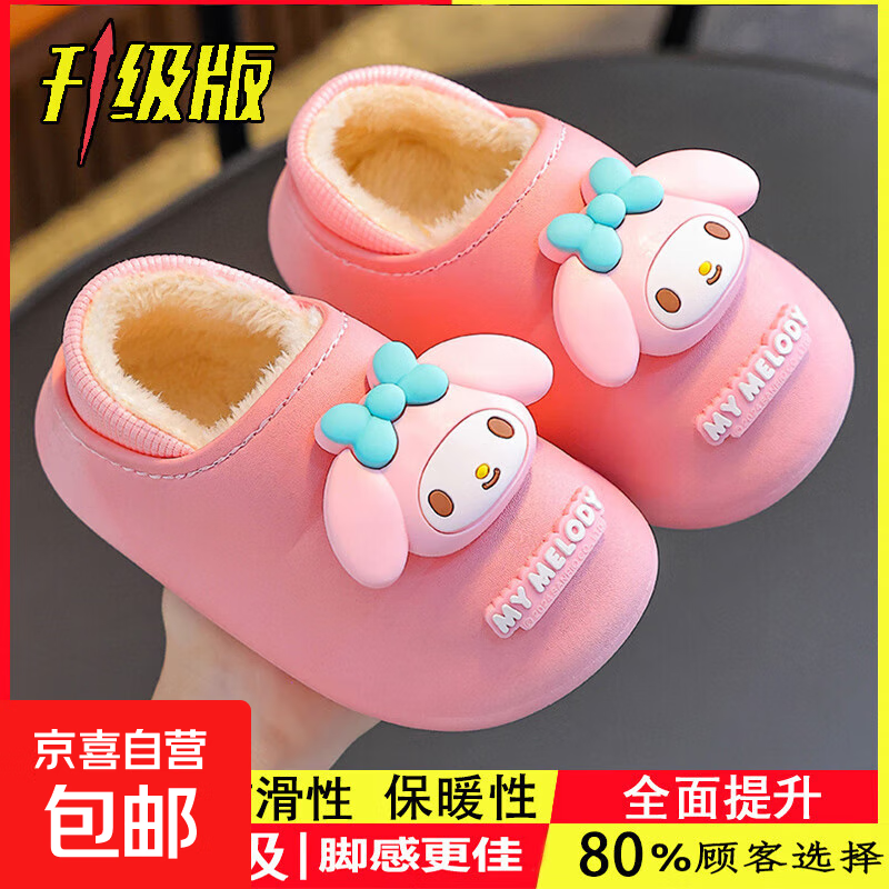 三丽鸥2025新款冬季儿童棉拖鞋女童库洛米保暖亲子小孩防水棉拖鞋 升级版环保材质瓜红美乐蒂(包跟 12 35/36码(鞋内长21CM适合脚长20