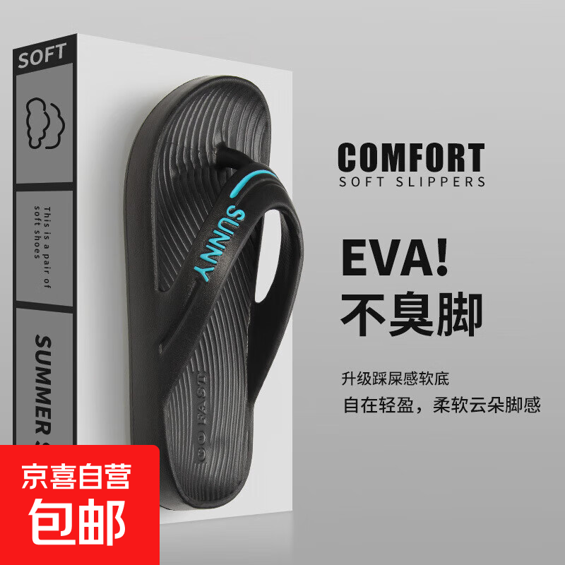 人字拖男夏季新款家居室内浴室洗澡厚底防滑情侣eva外穿凉拖鞋女 暗夜黑 42-43 【适合41-42脚穿】