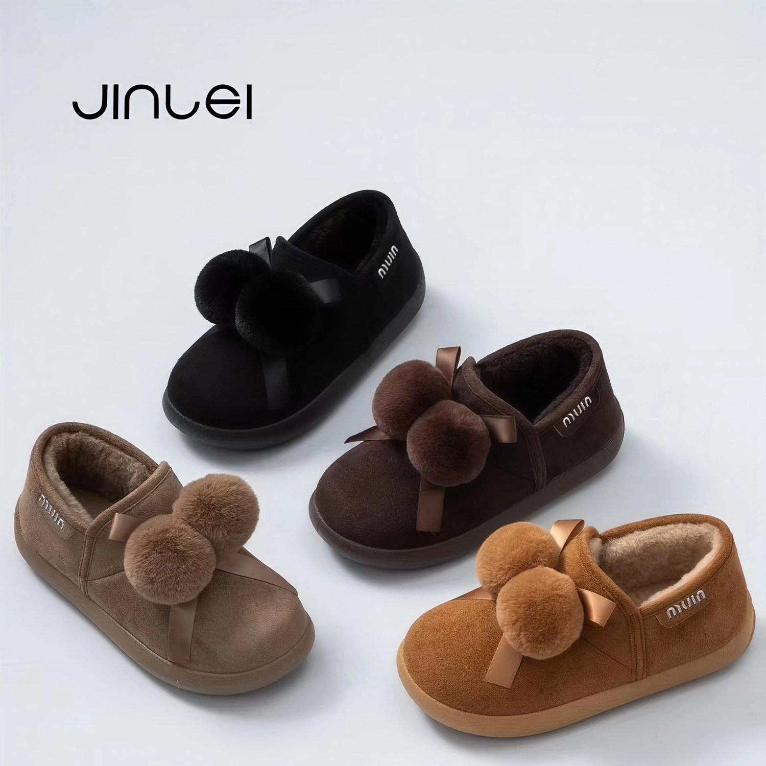 2025金磊时尚毛球情侣加厚保暖包跟棉拖鞋居家防滑外穿厚底纯色