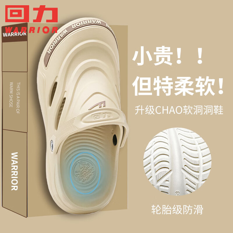 回力洞洞拖鞋夏季户外包头海边沙滩厚底防滑凉鞋男款HL0559卡其色42码