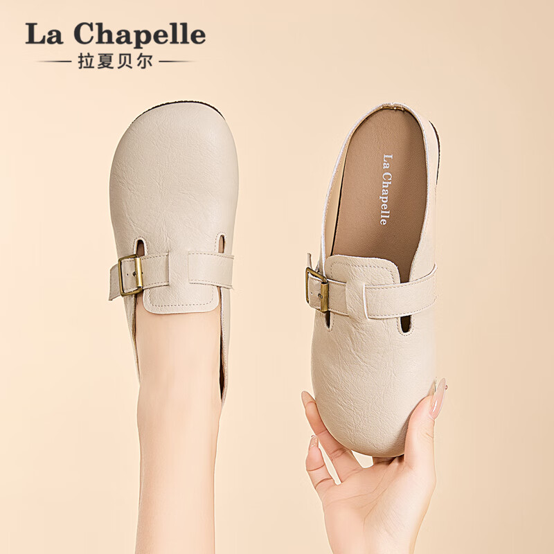 拉夏贝尔女鞋勃肯鞋女外穿懒人一脚蹬包头拖鞋子女-LSY1500 米色 36