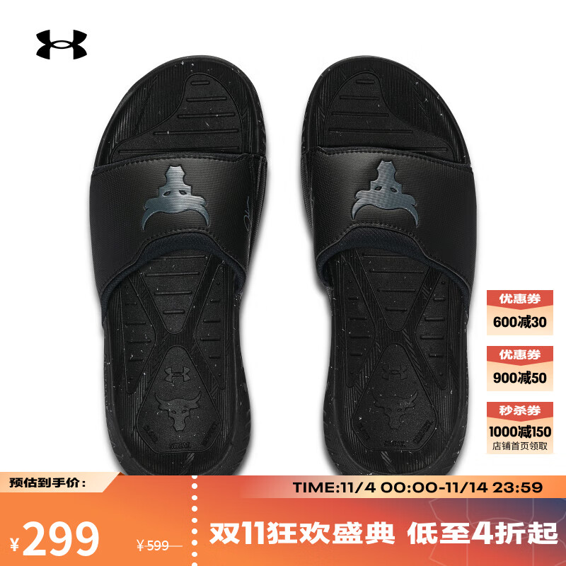 安德玛(UNDERARMOUR)Project Rock男女情侣轻质运动休闲拖鞋3026034 黑色001 44