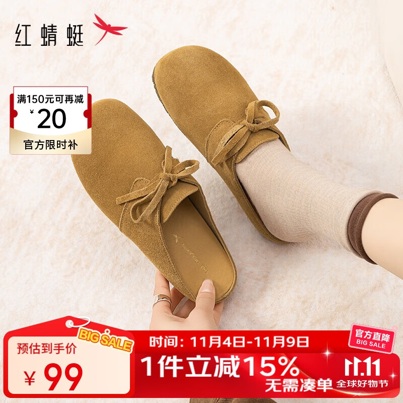 红蜻蜓拖鞋女2025春季女鞋包头外穿穆勒拖软底勃肯鞋WTB15140驼色38