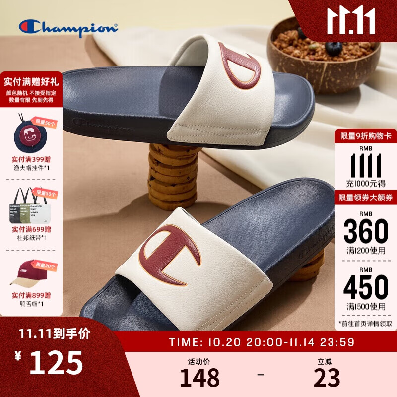 Champion冠军情侣拖鞋24新款一字拖沙滩鞋撞色半拖 深红 36