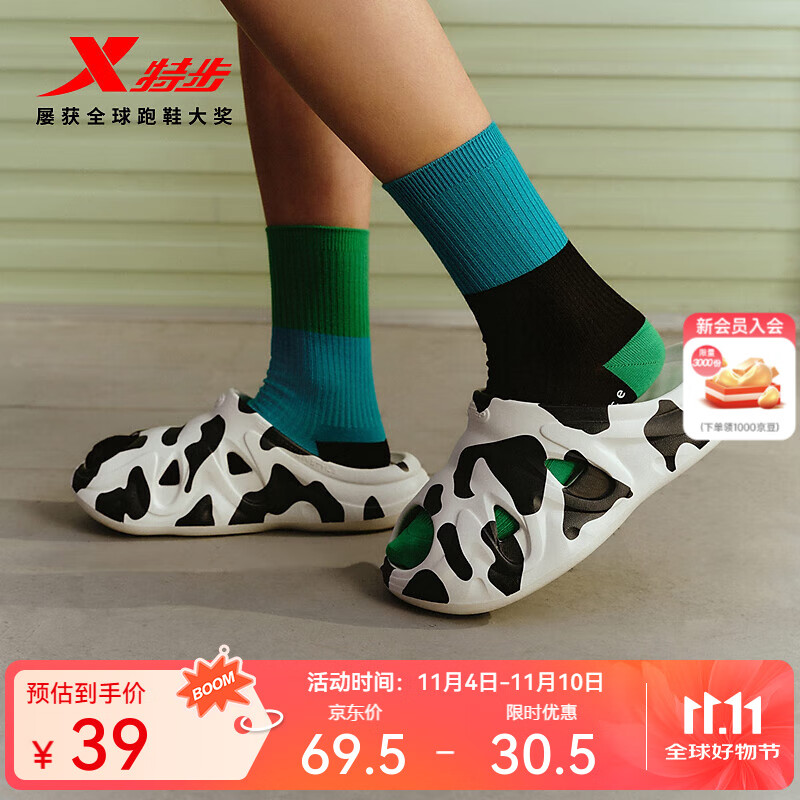 特步爪爪拖鞋女夏季新款厚底增高凉拖鞋休闲女鞋户外沙滩鞋女 帆白/黑 35