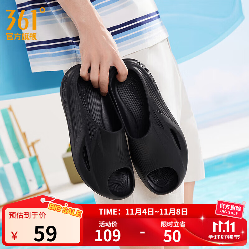 361°拖鞋男女BIG3夏季新款家居户外情侣运动凉拖鞋厚底沙滩软底凉鞋 曜石黑 41