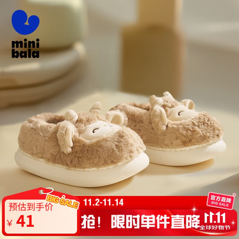 迷你巴拉迷你巴拉【萌趣造型】男女童软弹舒适内里长绒居家棉拖拖鞋