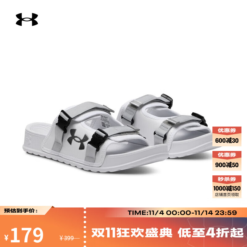 安德玛(UNDERARMOUR)Soft Movement男女情侣魔术贴运动休闲拖鞋6007202 白色100 41