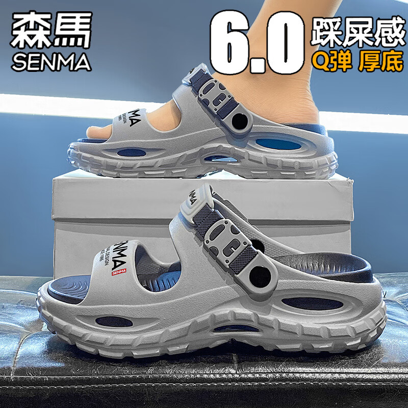 森馬凉鞋男夏季2026新款外穿厚底踩屎感一字拖鞋户外开车运动沙滩凉拖 灰色 【基础款】 43 (42-43 同码)