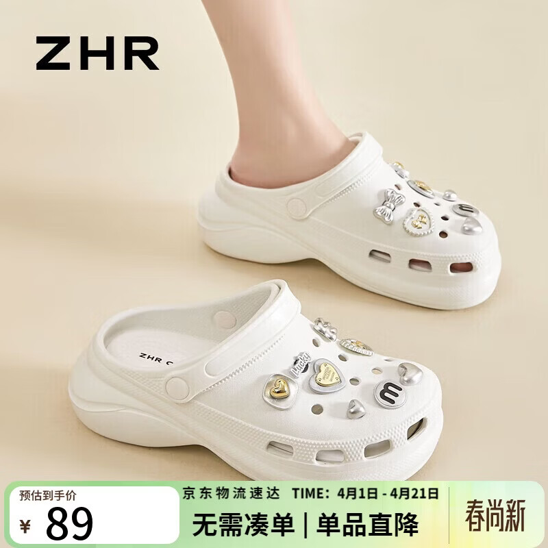ZHR则则拖鞋女夏季厚底踩屎感凉鞋女沙滩外穿洞洞鞋女 C86 白色 37/38