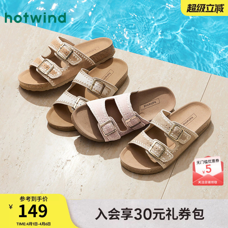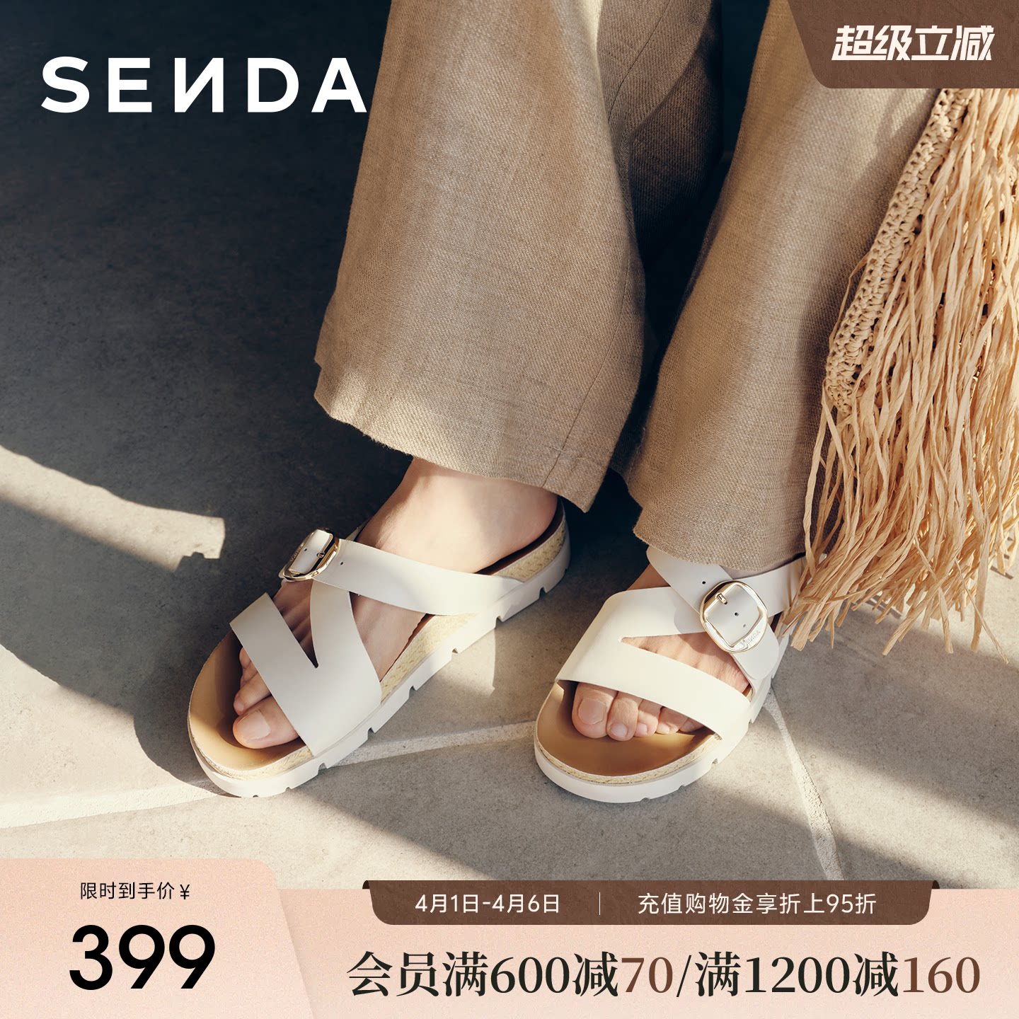 森达羊皮休闲拖鞋可外穿女26新款厚底勃肯鞋商场同款休闲鞋4LW33