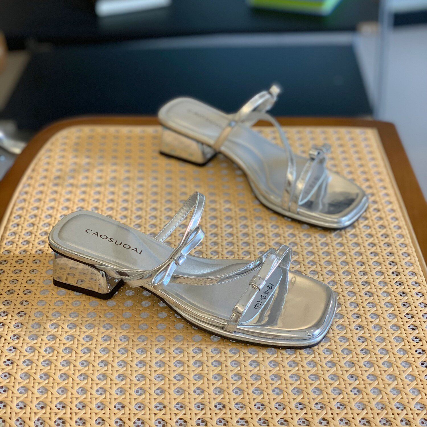 气质外穿方头粗跟一字拖鞋女2026夏季新款仙女风配裙子显瘦凉拖鞋