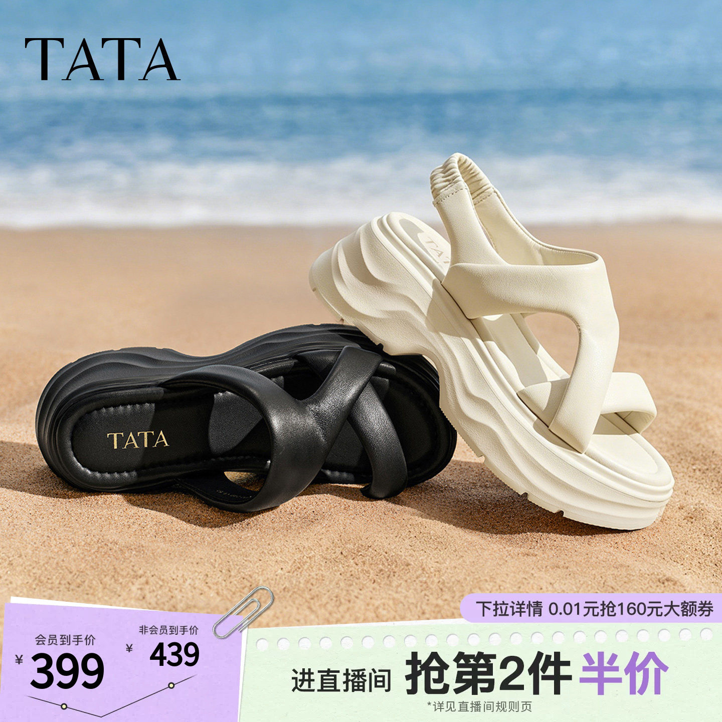 TATA他她女鞋2026夏季新款一字拖外穿海边休闲厚底凉拖鞋CXT02BT6