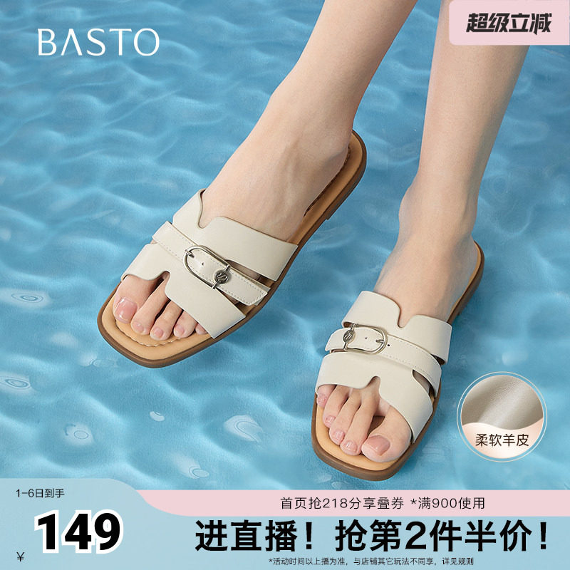 百思图夏季新款商场同款简约时尚百搭一字拖平跟女拖鞋USI03BT5